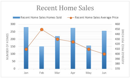 In this chart, the primary vertical axis on the left is used for sales volumes, whereas the secondary vertical axis on the right side is for price figures.