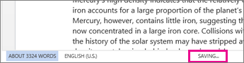Word saves your changes automatically. Look on the status bar at the bottom left corner of Word for the web. It will either show Saved or Saving.