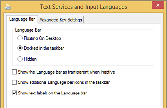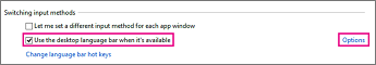 Under Switching input methods, select the Use the desktop language bar when it’s available check box, and then click Options.