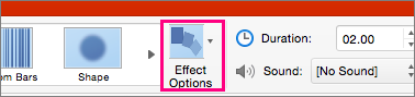 Next, select Effect Options to choose the kind of Morph transition you want to create. You can choose to optimize for Objects, Words, or Characters.
