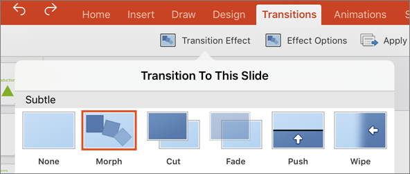 Using the Morph transition on PowerPoint for iPad and PowerPoint for iPhone