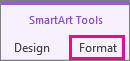 For SmartArt shapes, the Format tab appears under SmartArt Tools.